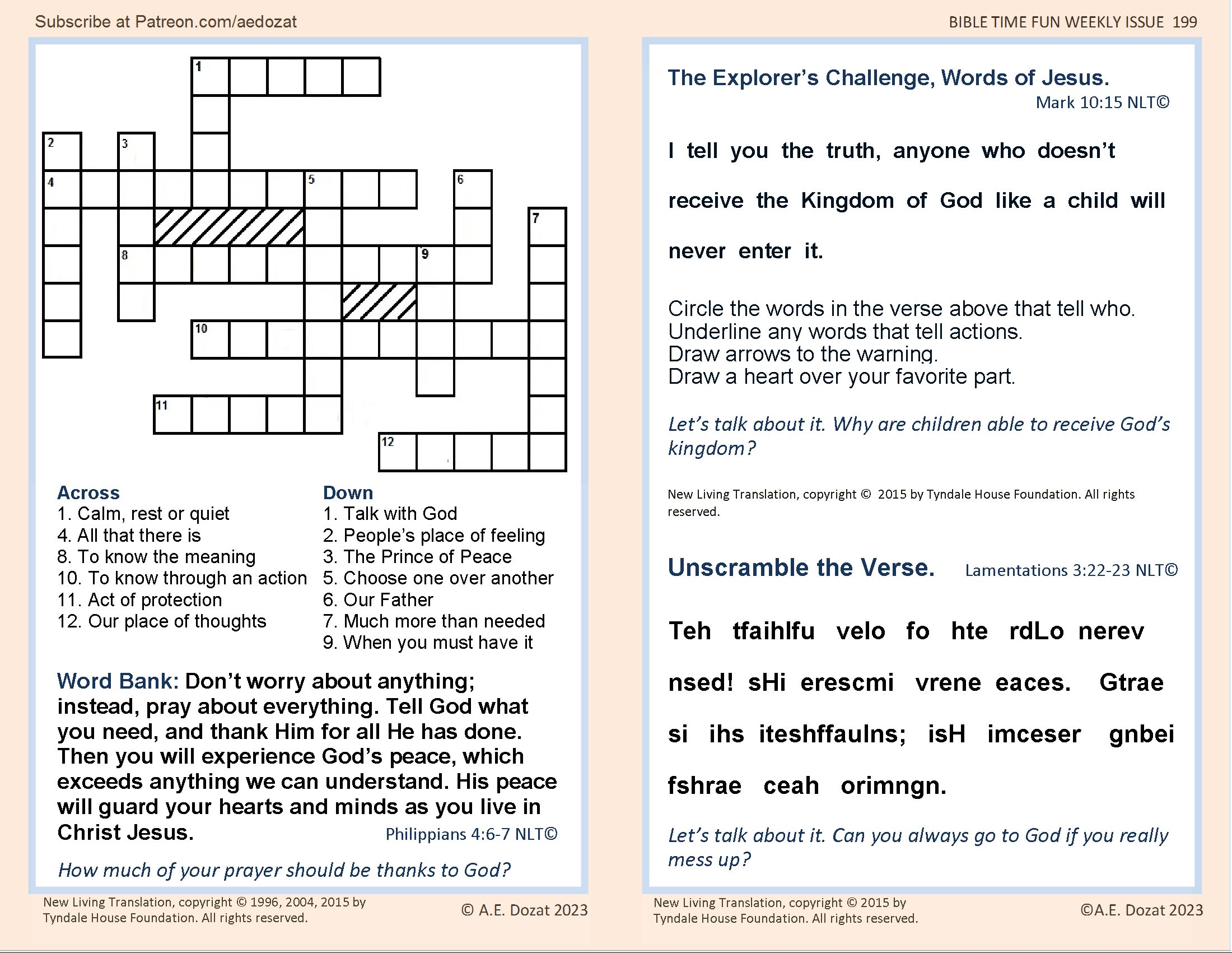 This issue was released some time ago, and BIBLE TIME FUN WEEKLY has had a few facelifts since then. You are welcome to download this issue or visit my Patreon page to access the most recent versions.